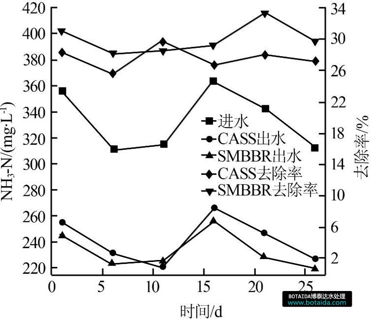 圖3 CASS和SMBBR對NH3-N的去除效果