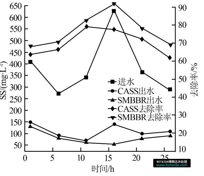CASS工藝和SMBBR工藝對SS的去除效果對比見圖6。