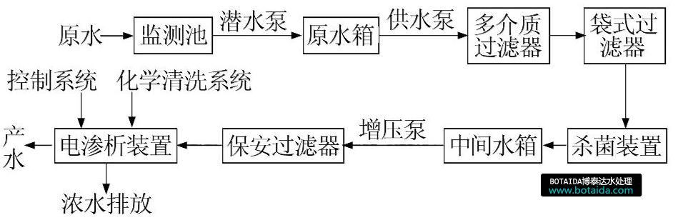 電滲析脫鹽裝置主要由預(yù)處理系統(tǒng)和電滲析器組成。