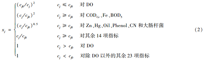 式中,x′j 為水質(zhì)指標(biāo)j的規(guī)范值.