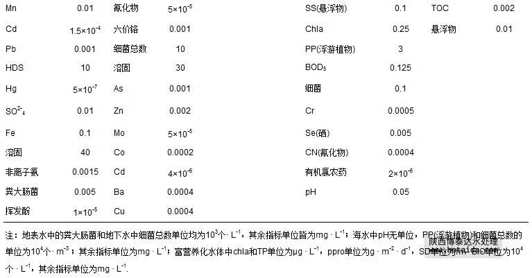 表 1 4類水體95項指標(biāo)的參照值