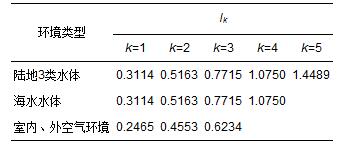 表 3 4類水體及室內(nèi)外空氣環(huán)境的引力普適指數(shù)的分級標(biāo)準(zhǔn)值Ik