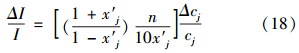 式中,分別表示引力指數(shù)的相對誤差和指標(biāo)測值的相對誤差.式(19)可寫為: