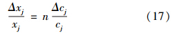 表 4 相應(yīng)于不同規(guī)范值x′j 的引力指數(shù)I對于指標(biāo)監(jiān)測數(shù)據(jù)cj的靈敏度Sc