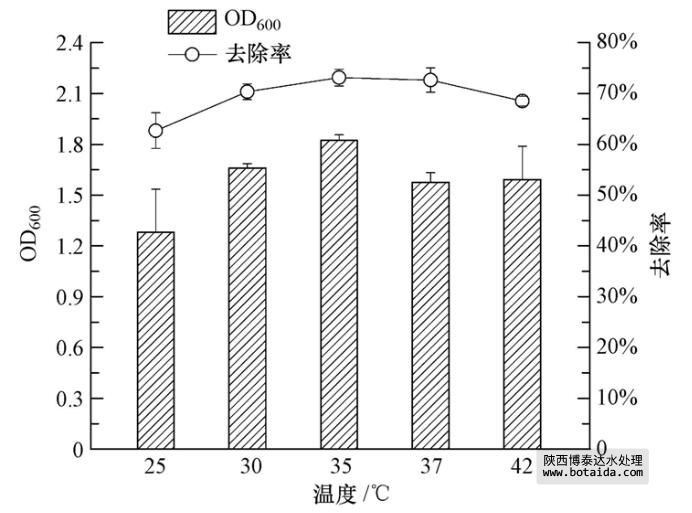 3.3.5 不同溫度對(duì)菌株ED-12的生長(zhǎng)及除磷能力的影響