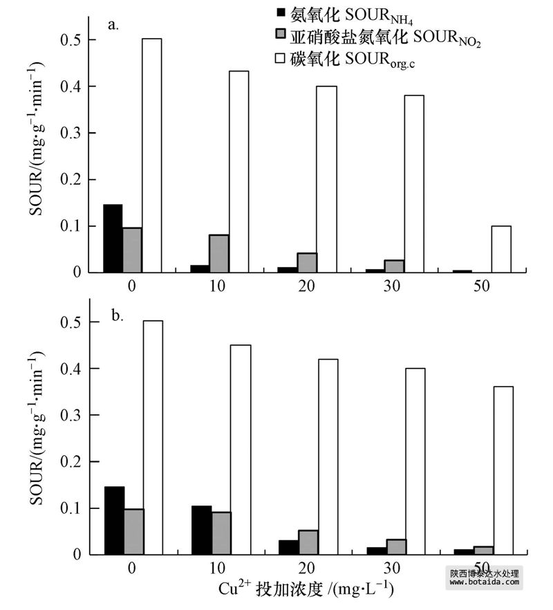 因此,本文主要采用間歇式活性污泥反應(yīng)器(SBR),研究Cu2+持續(xù)負(fù)荷期間及結(jié)束后AOB和NOB硝化菌群活性的變化,通過檢測硝化效率、微生物活性、Cu分布特點等信息,探討Cu2+對生物硝化過程抑制的作用原理.