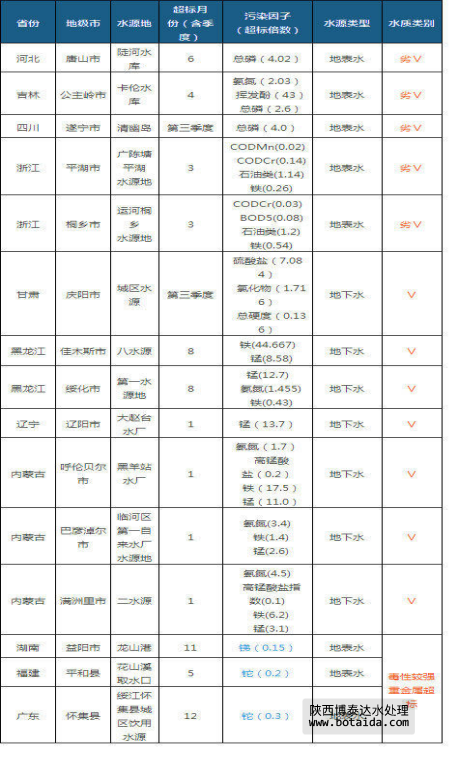 地表水水源地數(shù)量為995個,地下水水源地數(shù)量為338個,雖然地下水水源地數(shù)量只有地表水水源地數(shù)量的1/3,但其超標比例卻是后者的3.2倍。平均每個地下水水源地超標6.3次。