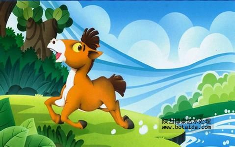 可是河上沒有橋,只能自己 淌過去??捎植恢篮铀卸嗌钅??猶豫中的小馬一抬頭,看見了正在不遠處吃草的牛伯 伯。小馬趕緊跑過去問到:“牛伯伯,您知道那河里的水深不深呀?” 牛伯伯挺起他那高大的身體笑著說:“不深,不深。才到我的小腿。”小馬高興地跑回 河邊準備淌過河去。