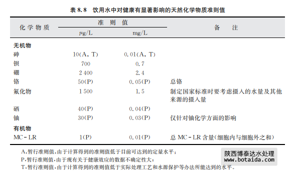 處理天然化學(xué)物質(zhì)的方法隨化學(xué)物質(zhì)的性質(zhì)和來源不同而不同。對(duì)于主要來自巖石和 沉積物的無機(jī)污染物,重要的是水源的選擇,需確定水源是否適用或經(jīng)過處理是否可同時(shí)消 除微生物污染和去除水中的特定污染物。在某些情況下,當(dāng)有多個(gè)備選水源時(shí),可將污染物 濃度較低的水用于稀釋或混合含污染物濃度較高的水來達(dá)到期望的結(jié)果。