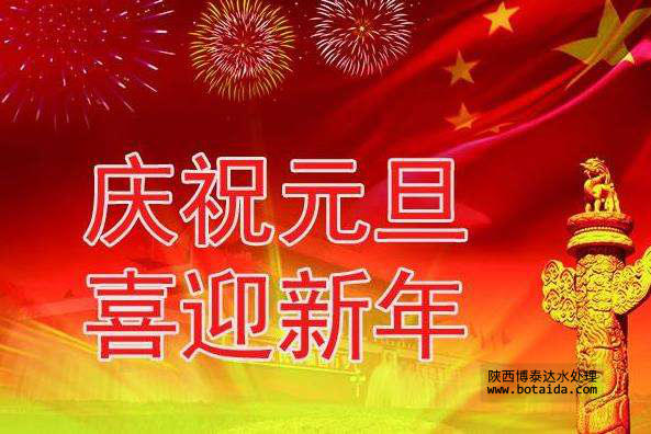 在此元旦來臨之前,陜西博泰達(dá)水處理科技有限公司祝愿各位新老客戶,新老朋友及全國(guó)的人民:闔家歡樂,萬(wàn)事順達(dá),新起點(diǎn)新氣象!