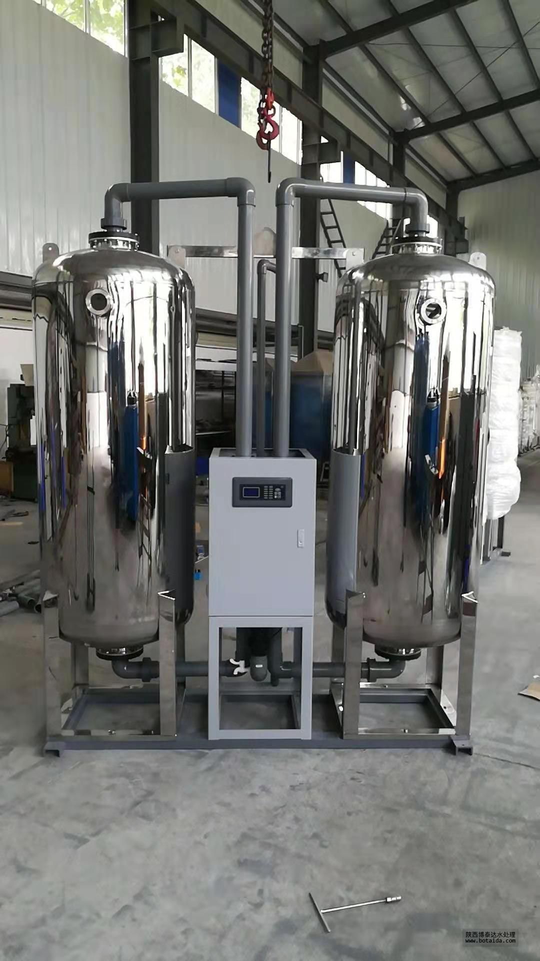 2.在全自動軟化水設備工作一段時間后,樹脂的交換能力被水中的鈣鎂離子所飽和時,此時由鹽罐自動給水,用鹽水對離子交換樹脂進行再生處理,以恢復樹脂的交換能力。