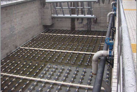 鼓風曝氣設備:是使用具有一定風量和壓力的曝氣風機利用連接輸送管道,將空氣通過擴散曝氣器強制加入液體中,是池內(nèi)液體與空氣充分接觸。