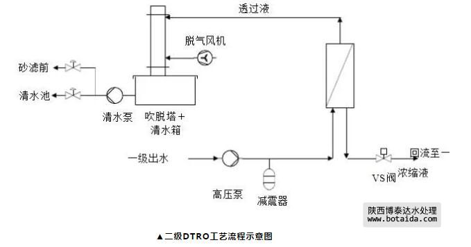 (2)兩級(jí)DTRO系統(tǒng)工藝流程