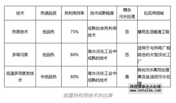 如低溫熱利用技術(shù)對比表所示,較常規(guī)熱泵技術(shù)和多級閃蒸技術(shù),低溫多效蒸發(fā)在熱利用率、技術(shù)工藝耦合污水處理等方面具有明顯優(yōu)勢,代表了相關(guān)技術(shù)領域的發(fā)展方向,是開展余熱利用和污水處理耦合技術(shù)的重點方向。