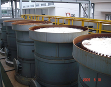 催化微電解是在不通電的情況下,利用微電解設(shè)備中填充的微電解填料產(chǎn)生“原電池”效應(yīng)對廢水進(jìn)行處理。當(dāng)通水后,在設(shè)備內(nèi)會形成無數(shù)的電位差達(dá)1.2V 的“原電池”。“原電池”以廢水做電解質(zhì),通過放電形成電流對廢水進(jìn)行電解氧化和還原處理,以達(dá)到降解有機(jī)污染物的目的。在處理過程中產(chǎn)生的新生態(tài)[.O H] 、[H] 、[O]、Fe2+ 、Fe3+等能與廢水中的許多組分發(fā)生氧化還原反應(yīng),比如能破壞有色廢水中的有色物質(zhì)的發(fā)色基團(tuán)或助色基團(tuán),甚至斷鏈,達(dá)到降解脫色的作用;生成的Fe2+ 進(jìn)一步氧化成Fe3 +,它們的水合物具有較強(qiáng)的吸附- 絮凝活性,特別是在加堿調(diào)pH 值后生成氫氧化亞鐵和氫氧化鐵膠體絮凝劑,它們的絮凝能力遠(yuǎn)遠(yuǎn)高于一般藥劑水解得到的氫氧化鐵膠體,能大量絮凝水體中分散的微小顆粒、金屬粒子及有機(jī)大分子。該工藝具有適用范圍廣、處理效果好、成本低廉、處理時間短、操作維護(hù)方便、電力消耗低等優(yōu)點(diǎn),可廣泛應(yīng)用于工業(yè)廢水的預(yù)處理和深度處理中。應(yīng)用廢水種類:染料廢水、焦化廢水、醫(yī)藥廢水、農(nóng)藥廢水、樹脂廢水、助劑廢水、制革廢水、電鍍廢水、造紙廢水、淀粉廢水、大蒜廢水、垃圾滲濾液等工業(yè)類廢水。